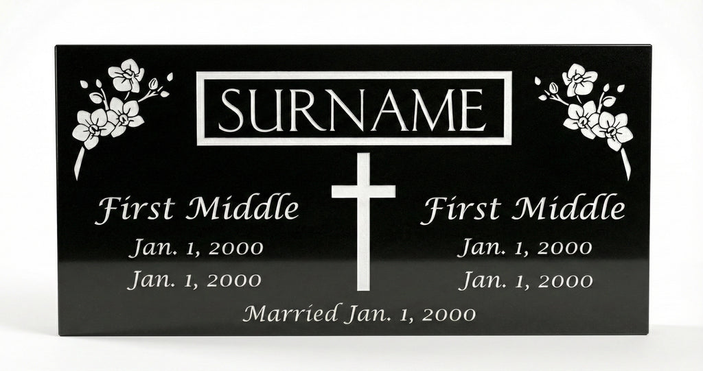 We provide a wide range of flat granite markers at competitive prices, in partnership with a leading local monument maker. Choose from various types of high-quality granite to suit your preference. Our prices include the marker, design and production, ensuring great value. Additionally, we offer a price match guarantee: if you find a lower price from another supplier, just show us the quote and we'll beat it by 10%