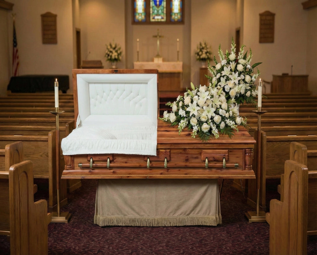 体验我们美国雪松棺材的自然雪松之美,它是卓越与优雅的化身。以一种持久而独特的方式向您所爱的人致敬,让天然的雪松之美陪伴他们走完最后的旅程。